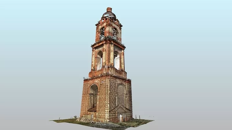 Несмотря на столь удручающее состояние колокольни, ее восстановление можно ускорить и упростить на этапе предпроектных изысканий благодаря наземному лазерному сканированию. Нашим специалистам было поручено создать не просто чертежи, а живой цифровой двойник храмового комплекса, при этом необходимо было сохранить и размеры, и сложный визуальный облик зданий с высочайшей точностью.