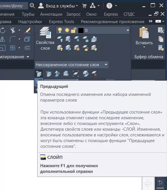 Он запоминает историю ваших переключений слоёв! Просто нажмите на него, и AutoCAD мгновенно вернётся к тому слою, который вы использовали до текущего. Нажали ещё раз — вернётесь на шаг дальше назад. Это как «Отменить» (Ctrl+Z), но только для настроек слоя.