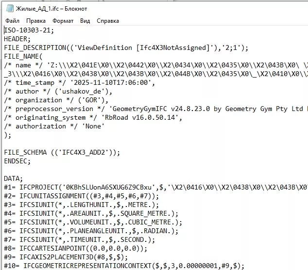 Графическая часть в электронном виде уже используется — чертежи в формате pdf. При этом не играет роли, какое программное обеспечение (далее — ПО) используется для открытия pdf-файла. Информация в открытых чертежах отображается одинаково. Для проверки требуется умение читать условные обозначения. Файлы формата IFC содержат информацию, которую ПО считывает и отображает (Рис. 1). При этом возможности по извлечению данных зависят от наличия инструментов в используемом ПО для проверки. В связи с этим хочется оценить новое ПО и понять, насколько оно подходит для работы с ЦИМ по объектам улиц.