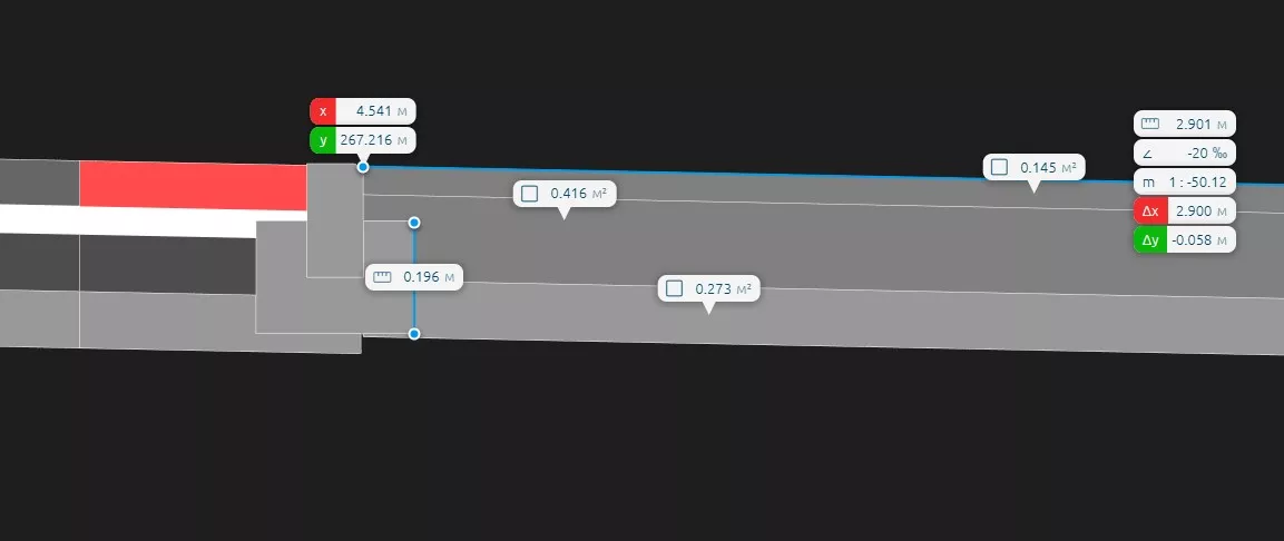 Данный функционал измерений доступен также и на сечениях (Рис. 13).