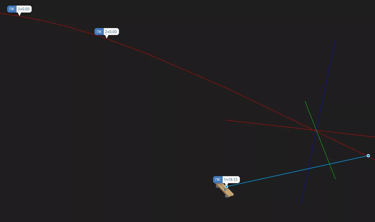 - Подпись пикетов. Можно сделать подпись по оси. Это помогает ориентироваться по расположению элементов в целом. При этом можно посмотреть, на каком пикете находится отдельный элемент (Рис. 6)