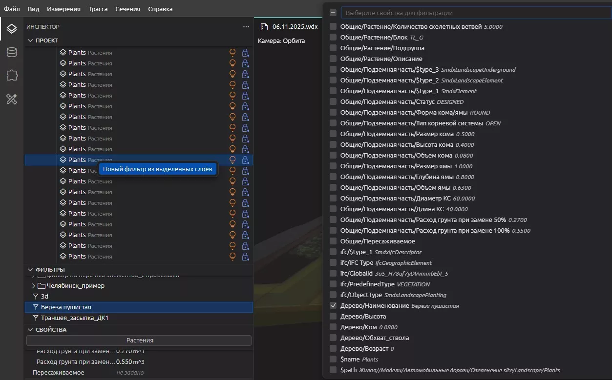 Какие фильтры применимы для поиска конкретного элемента, также можно посмотреть в бесплатном ПО для просмотра проприетарного формата ЦИМ из Топоматик Робур и IFC-формата — «Инспектор проектов» (Рис.9).