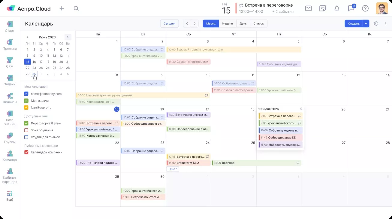 Календарь подходит для команд, где задачи привязаны к датам: встречи, события, презентации, контрольные точки. Это удобный формат для руководителей отделов продаж, HR, PR и других команд, которые живут графиком.
