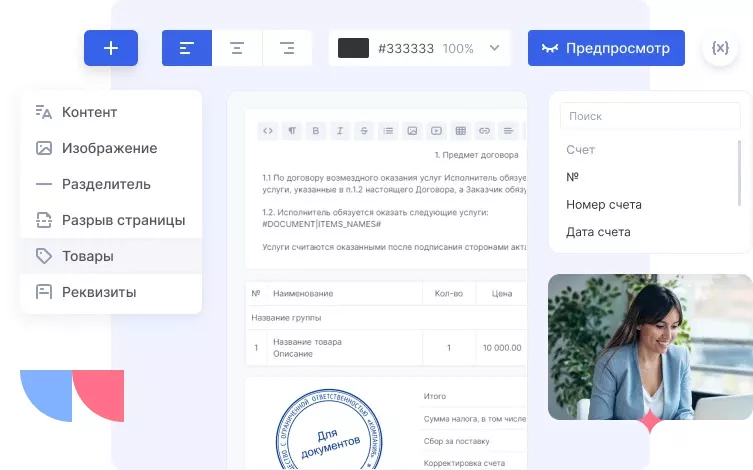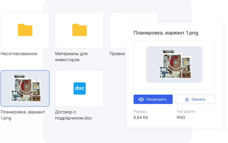 В CRM удобно хранить все проектные и юридические документы, договоры с подрядчиками и фотографии объектов. Конструктор документов позволяет автоматически формировать договоры, счета и акты, сокращает ручной труд и снижает ошибки.