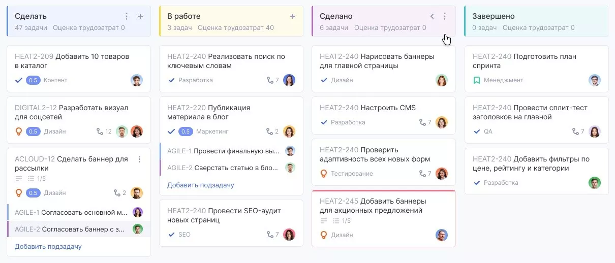 На доске хорошо видно, где копятся карточки. Если на этапе согласования много задач, но они не двигаются, это сигнал: нужно менять процесс работы с заказчиком или пересматривать регламент согласований. Если задачи постоянно возвращаются на доработку, стоит проверить качество входных данных или стандарты оформления.
