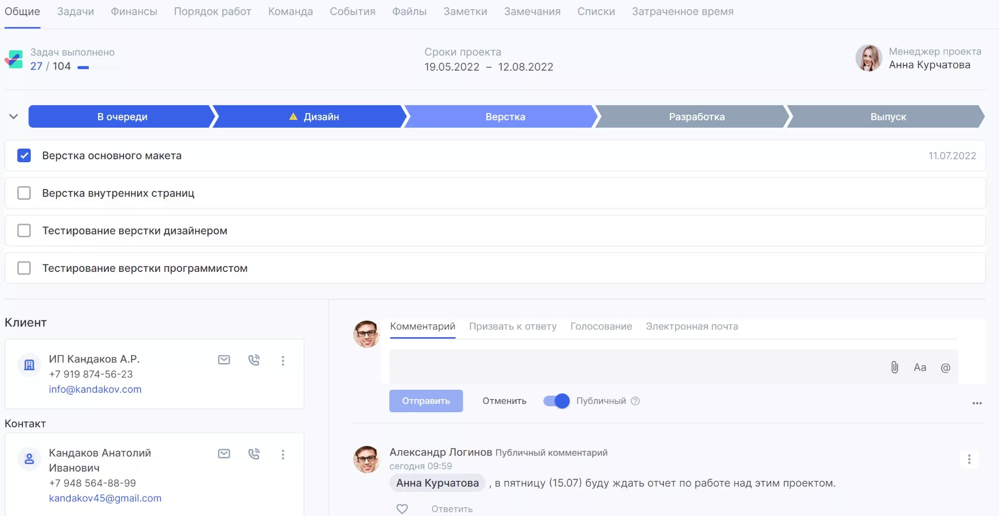 В результате каждый участник видит весь контекст: что уже сделано, что согласовано, какие файлы актуальны.