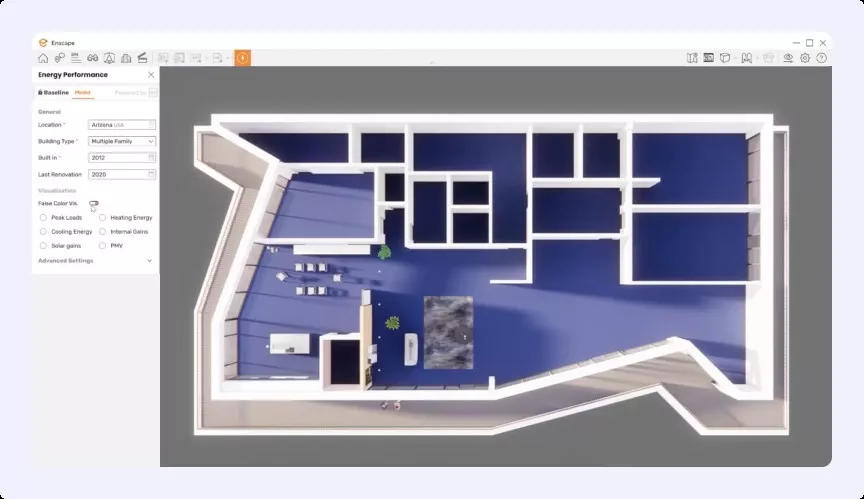 Подходит для быстрой визуализации. Используется, когда нужно показать заказчику не только чертежи, но и реалистичный образ будущего объекта. С помощью Enscape можно пройтись по зданию в VR и получить раннюю обратную связь.