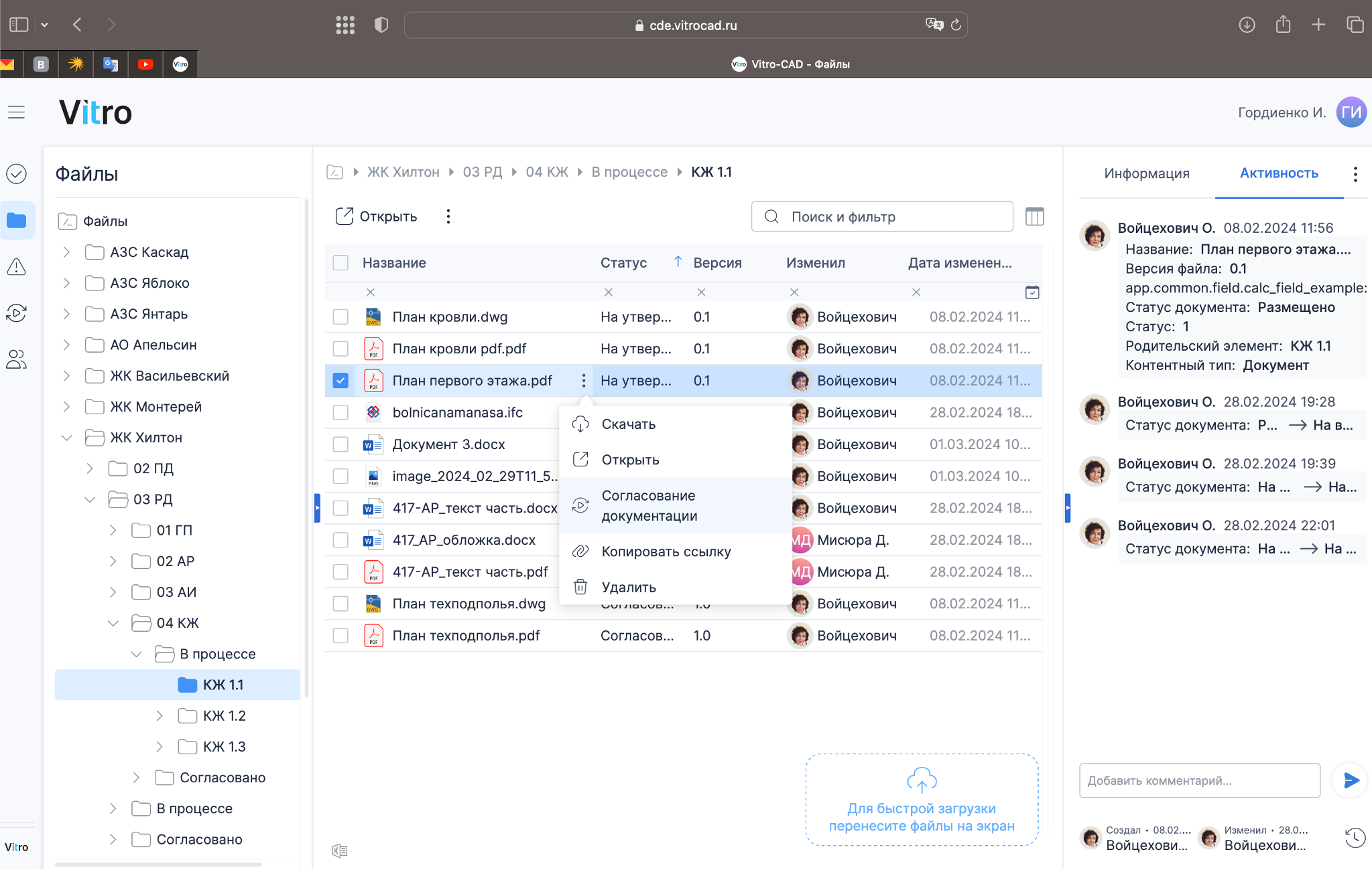 возможность работы с реестром замечаний при проверке вложенных файлов