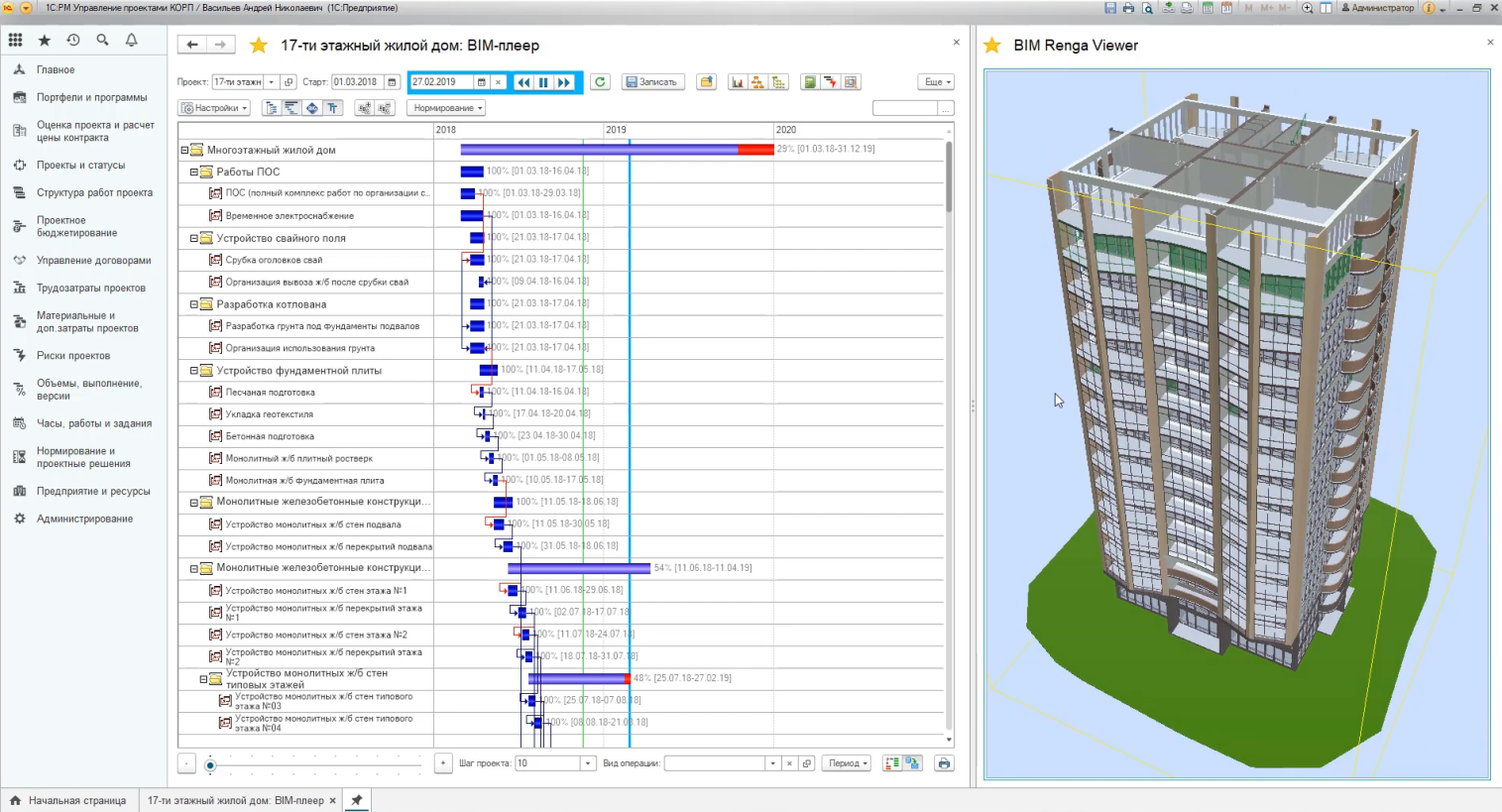 «1С:ERP Управление строительной организацией» – определение сроков, план-фактный анализ выполнения строительно-монтажных работ (BIM 4D)